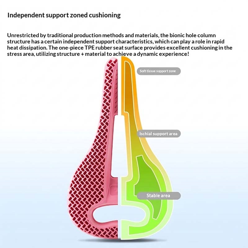 Această șa este o alegere excelentă pentru cicliștii care doresc un confort sporit și o reducere a presiunii în timpul plimbărilor zilnice, antrenamentelor sau ieșirilor cu bicicleta din weekend. Structura tip fagure și centrul gol contribuie la îmbunătățirea susținerii și a respirabilității, în timp ce construcția ușoară menține agilitatea bicicletei.