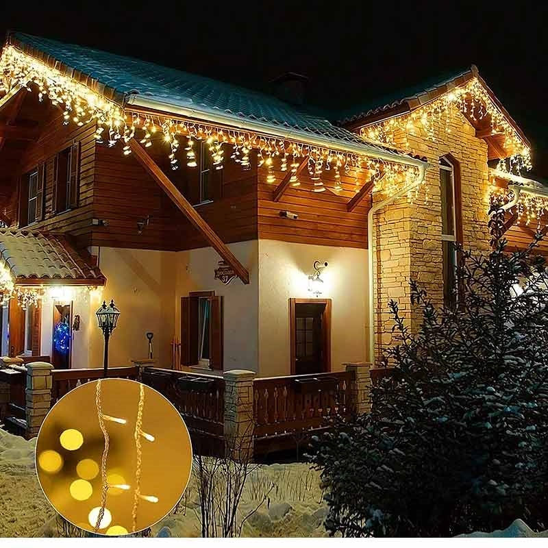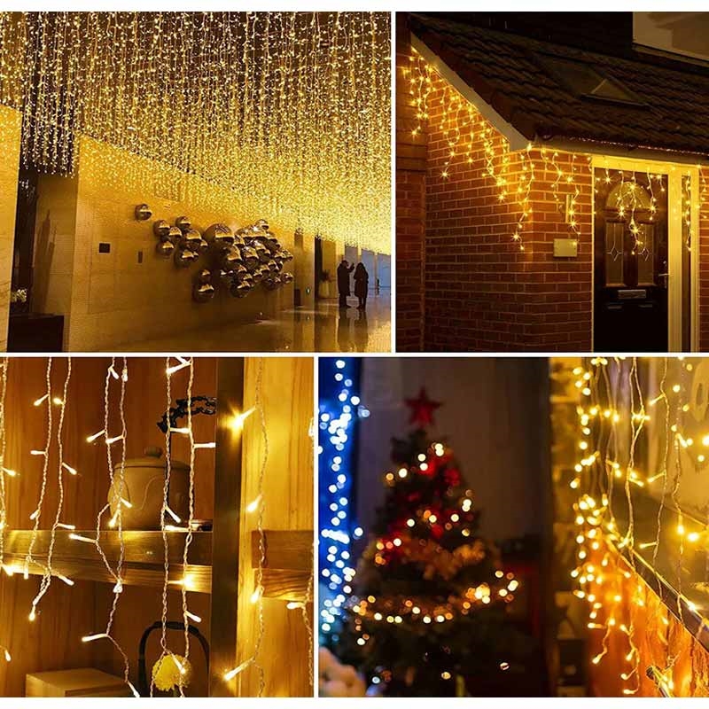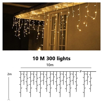 - Design de perdea în cascadă cu 300 de LED-uri albe calde pentru o strălucire moale și primitoare