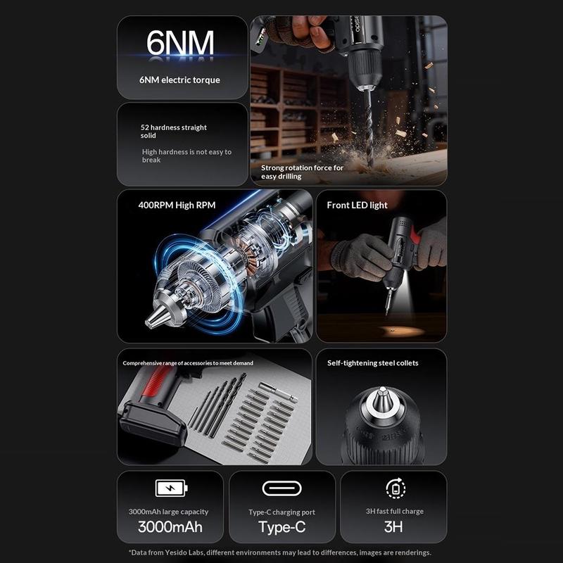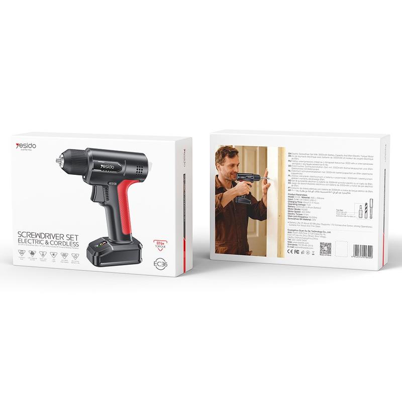 YESIDO EC36 este o achiziție excelentă pentru oricine dorește un set practic de mașină de găurit și șurubelniță fără fir pentru reparații casnice, lucrări de asamblare și sarcini de bricolaj. Acesta combină designul compact, modurile de manevrare flexibile, cuplul util și un set complet de accesorii într-un singur pachet. Acest lucru îl face o alegere convenabilă pentru utilizatorii care doresc o unealtă ușor de manevrat, care poate acoperi o gamă largă de sarcini zilnice.