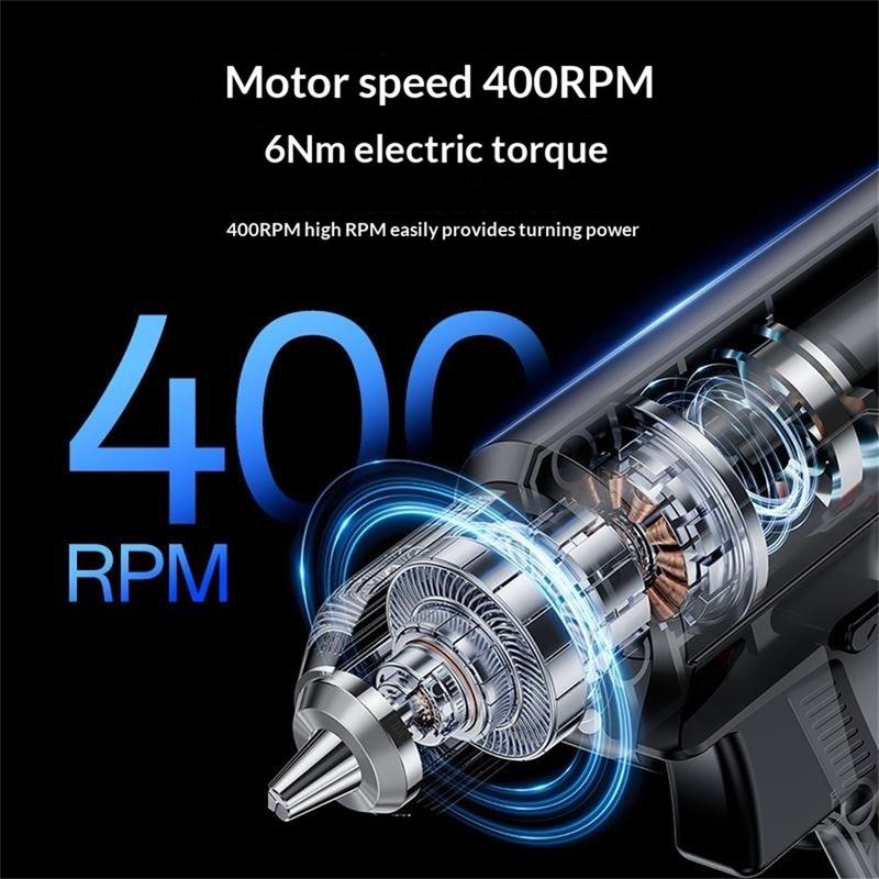 Acest set de mașini de găurit fără fir este conceput pentru a oferi putere fiabilă într-un format compact. Cu un cuplu electric de până la 8 Nm și o viteză a motorului de 400 rpm, este potrivit pentru o gamă largă de aplicații de înșurubare și găurire ușoară. Designul fără fir vă oferă mai multă libertate de mișcare, în timp ce bateria cu litiu de 3000mAh vă ajută să lucrați mai mult timp fără a fi nevoie de reîncărcări constante.
