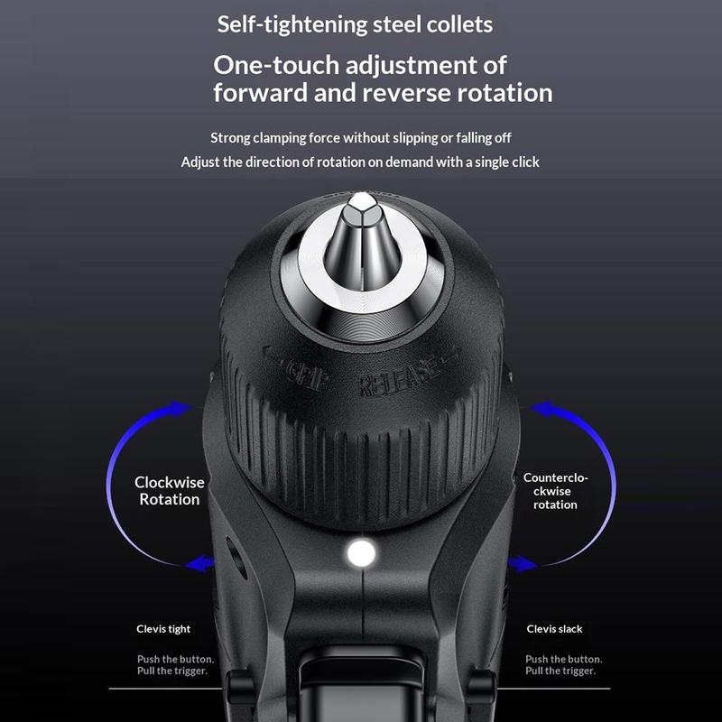 YESIDO EC36 poate comuta rapid între configurațiile dreaptă și pistol, permițându-vă să adaptați unealta la diferite spații și unghiuri de lucru. Acest lucru facilitează utilizarea în zone înguste, colțuri incomode sau poziții în care forma standard a unei mașini de găurit poate fi mai puțin practică. Transformarea cu o singură tastă adaugă un plus de confort pentru utilizatorii care au nevoie de o unealtă mai adaptabilă pentru diferite sarcini.