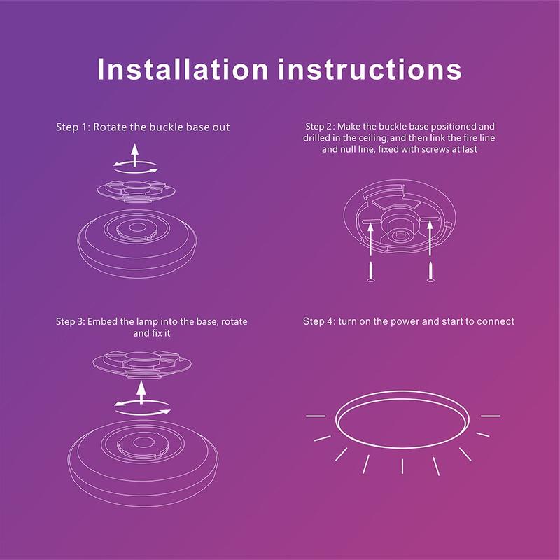 ZJ-BWCLAH-RGBWW-R12C2 Plafonieră LED inteligentă - Lampă cu control vocal RGB/CCT de 30 W cu WiFi, Bluetooth și APP Control