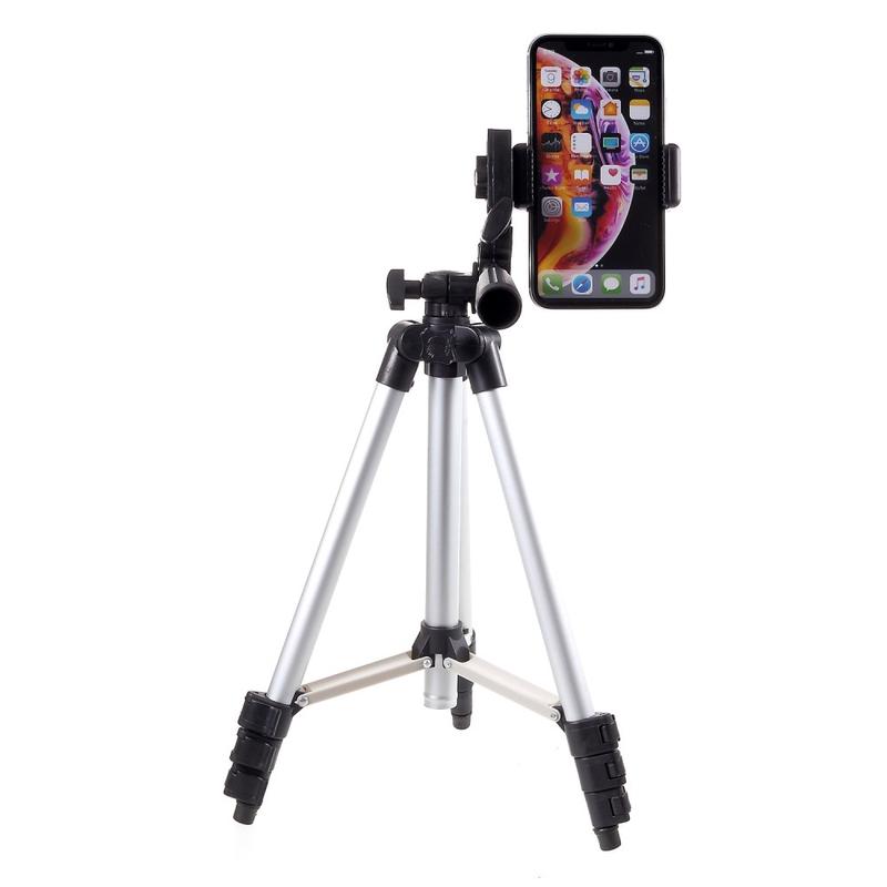 3110 Stand tripod reglabil din aluminiu cu clemă pentru telefon - suport 57-83mm, înălțime 1020 mm