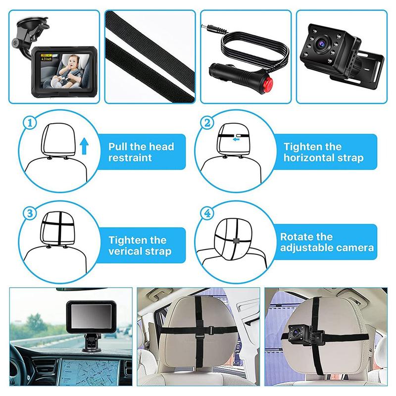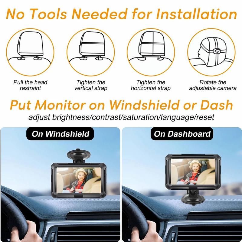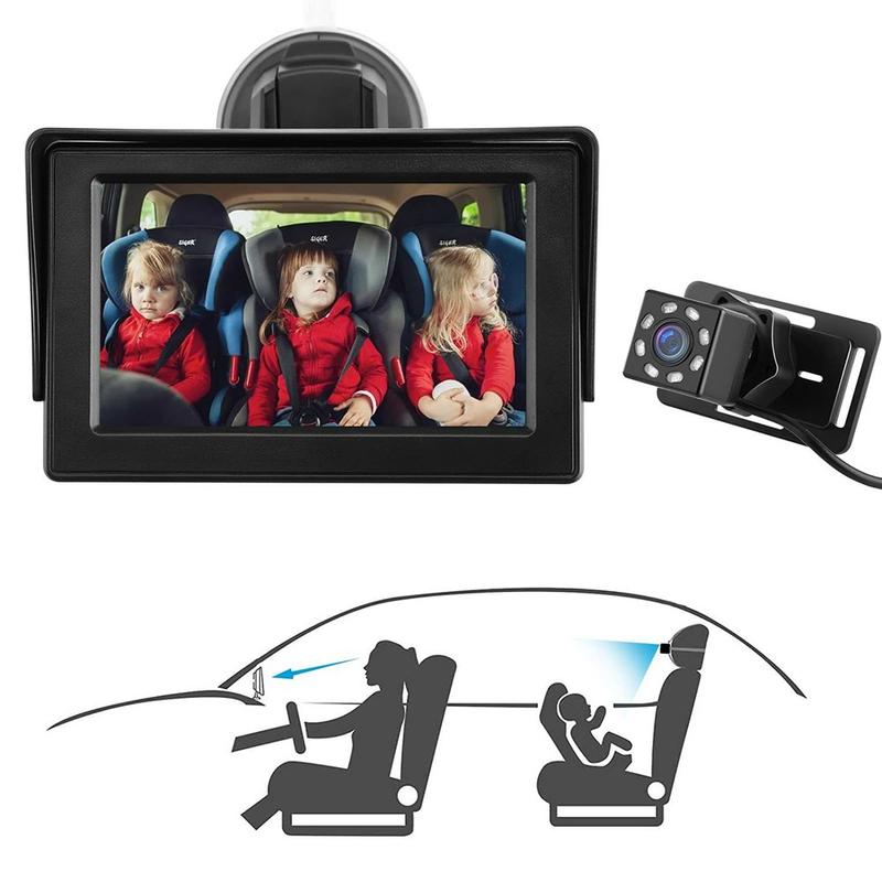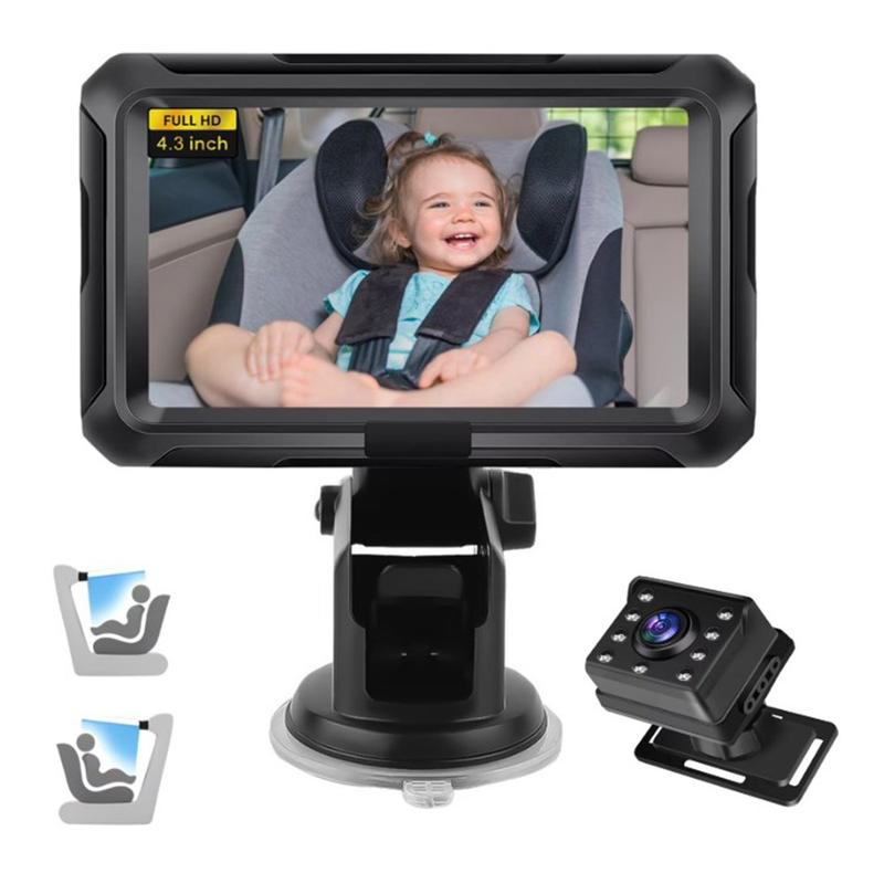 4.3-Inch HD 1080P Monitor auto pentru bebeluși - Cameră de vedere pe timp de noapte cu unghi larg și rotire 360 pentru siguranța scaunului din spate
