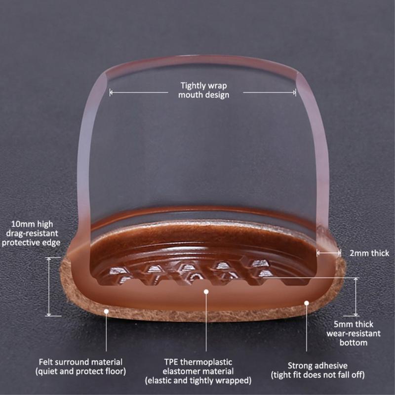 Aceste huse pătrate pentru picioare de scaun asigură o protecție fiabilă pentru mobila și podelele dvs. Fabricate din TPE flexibil, cu un fund moale de pâslă, reduc zgomotul, previn zgârieturile și împiedică picioarele scaunelor să deterioreze suprafețele dure precum lemnul, laminatul sau gresia.