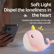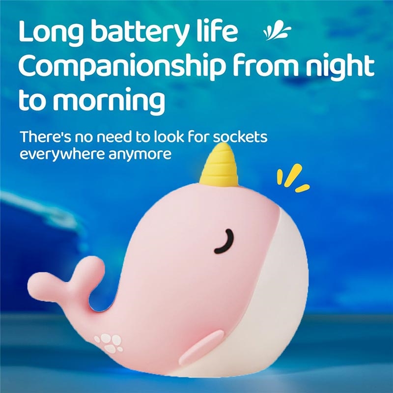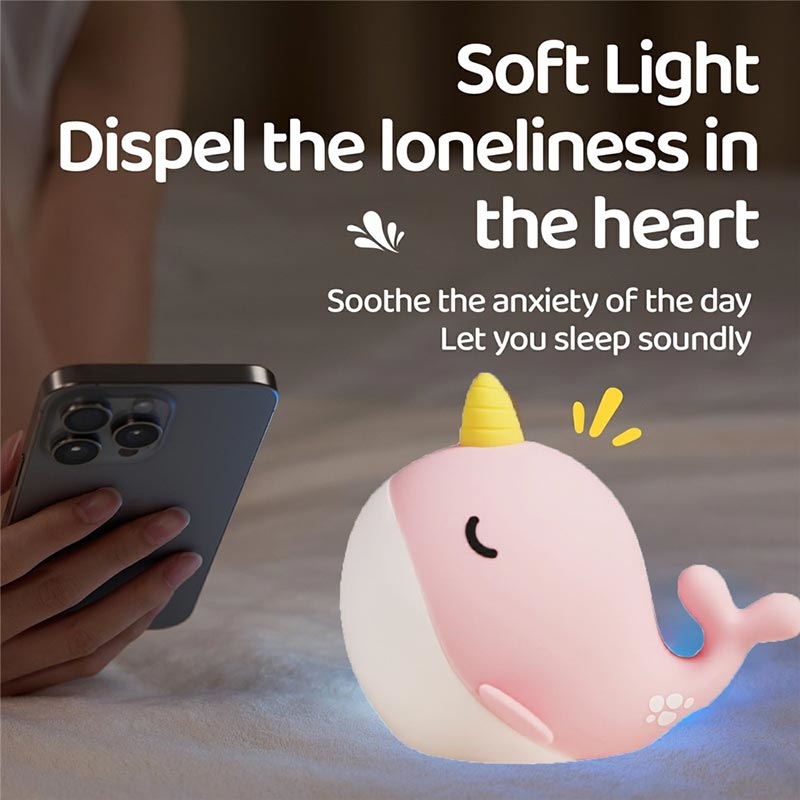 A044 Narwhal Lumină de noapte din silicon - Control prin atingere, USB-C reîncărcabilă și strălucire ambientală moale