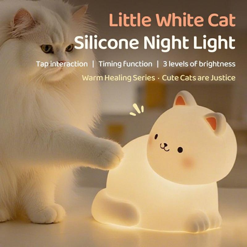 - 1 × A068 Lumină de noapte din silicon cu pisică drăguță