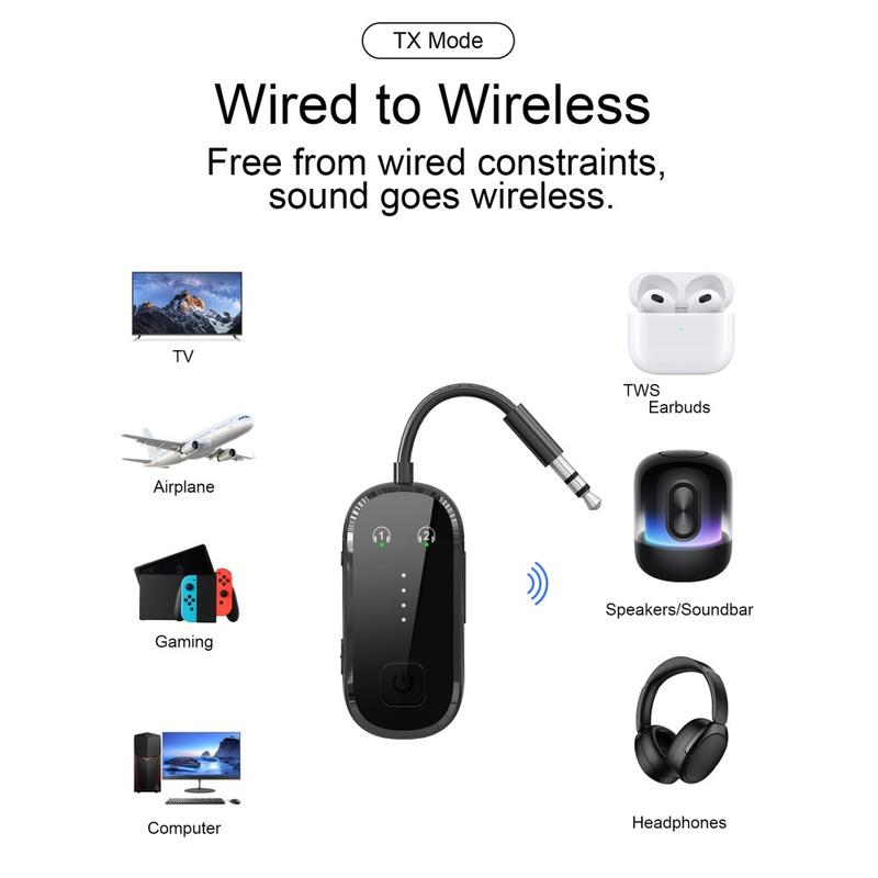Datorită tehnologiei Bluetooth 5.4, dispozitivul oferă un răspuns mai rapid, conectivitate stabilă și performanță wireless eficientă. În modul transmițător, acesta poate transmite audio de la surse cu fir către căști sau difuzoare Bluetooth. În modul receptor, acesta poate recepționa audio wireless de pe smartphone, tabletă sau alt dispozitiv compatibil Bluetooth și îl poate transmite către echipamente audio cu fir prin conexiunea de 3,5 mm. Suportul dual link adaugă și mai multă comoditate, permițând conectarea la două dispozitive Bluetooth în același timp, facilitând ascultarea în comun sau comutarea între mai multe dispozitive.