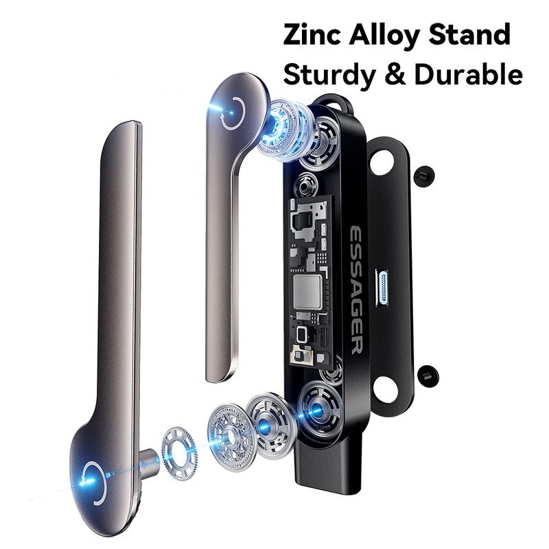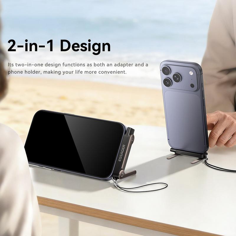 Adaptorul ESSAGER USB-C mamă – USB-C tată este un accesoriu inteligent 2-în-1 care combină conectivitatea de mare viteză cu un suport pliabil pentru telefon. Conceput pentru confortul de zi cu zi, acesta suportă încărcare de până la 240 W și transfer de date de 40 Gbps, iar designul în formă de L de 90° contribuie la obținerea unui unghi mai confortabil al cablului în timpul utilizării. Compact, ușor și ușor de transportat, este o soluție practică pentru muncă, călătorii și configurările zilnice de încărcare.