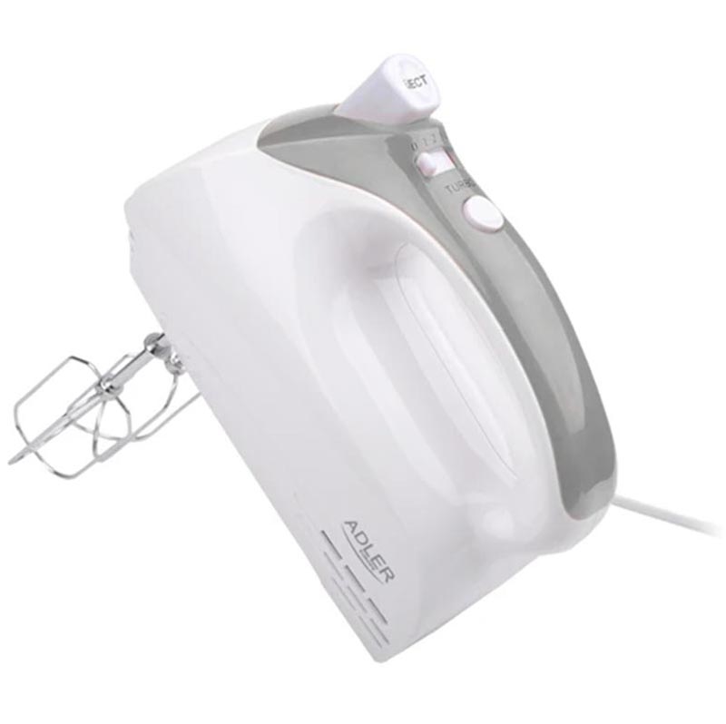 Un mixer foarte util de 300 W, care este un instrument indispensabil pentru oricine care coace prăjituri și fursecuri.Permite utilizarea la 5 viteze diferite, în funcție de tipul de mâncare pe care o pregătiți. Datorită acestui fapt, poate fi folosit atât pentru a amesteca făina cu alte ingrediente, cât și pentru a bate albușurile. La nevoie, puteți folosi funcția TURBO. Mixerul este foarte practic și fiabil și poate fi utilizat pentru o perioadă mai lungă de timp, fără a exista riscul să se strice.