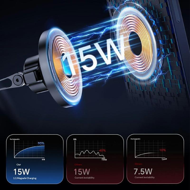 Cu suport pentru încărcare wireless de până la 15W, AKD255 vă ajută să vă alimentați telefonul compatibil în timp ce conduceți. Cipul său inteligent de control al temperaturii asigură o încărcare mai sigură și mai eficientă, în timp ce sistemul magnetic puternic cu 20 de magneți de neodim vă ajută să vă mențineți telefonul stabil chiar și pe drumuri denivelate, în viraje strânse sau la frânări bruște. Suportul poate fi instalat pe tabloul de bord, pe parbriz sau în spatele ecranului, oferindu-vă mai multă libertate pentru a crea configurația care funcționează cel mai bine în mașina dvs.
