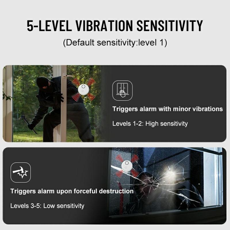 - Detecție cu sensibilitate ridicată: Senzorul de vibrații reglabil pe 5 niveluri captează chiar și loviturile ușoare sau impacturile puternice pentru protecție maximă.
