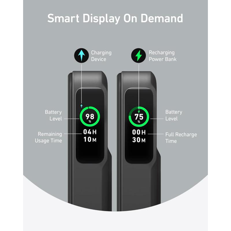 Anker MagGo Wireless Power Bank 10000 mAh - Încărcare rapidă Qi2 15 W, USB-C 27 W, afișaj inteligent și suport