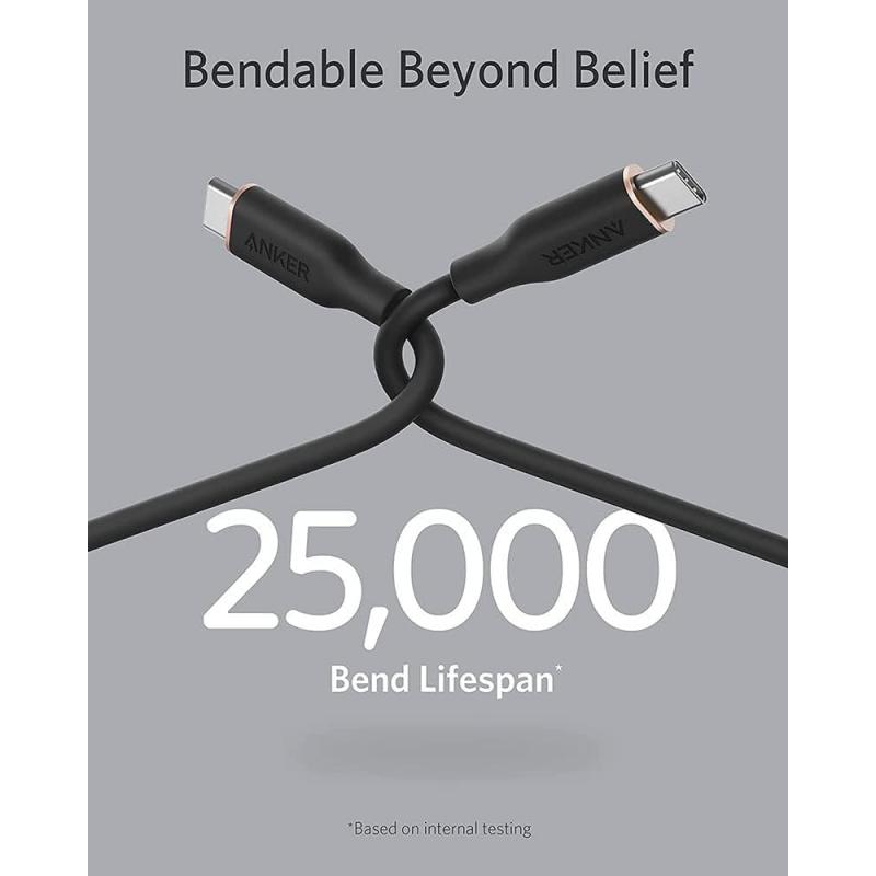 Anker PowerLine III Flow USB-C la cablu USB-C - 100 W încărcare rapidă, silicon ultra-moale, 0,9 m