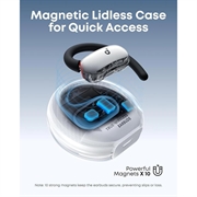 Căștile cu ureche deschisă Soundcore V40i sunt concepute pentru un stil de viață activ în care confortul, conștientizarea și calitatea sunetului contează. Cu un design inovator cu ureche deschisă și cârlige reglabile, acestea stau confortabil în afara canalului auditiv, permițându-vă să vă bucurați de muzică în timp ce rămâneți conștient de împrejurimi. Carcasa de încărcare transparentă elegantă, fără capac, adaugă o notă modernă și permite accesul rapid, fără efort, oriunde v-ați afla.
