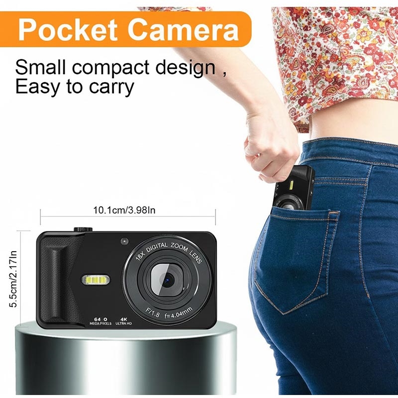 A59 Cameră digitală compactă cu ecran IPS de 2.8″ - Fotografii de 64MP, zoom 18×, video 2K (4K interpolat)