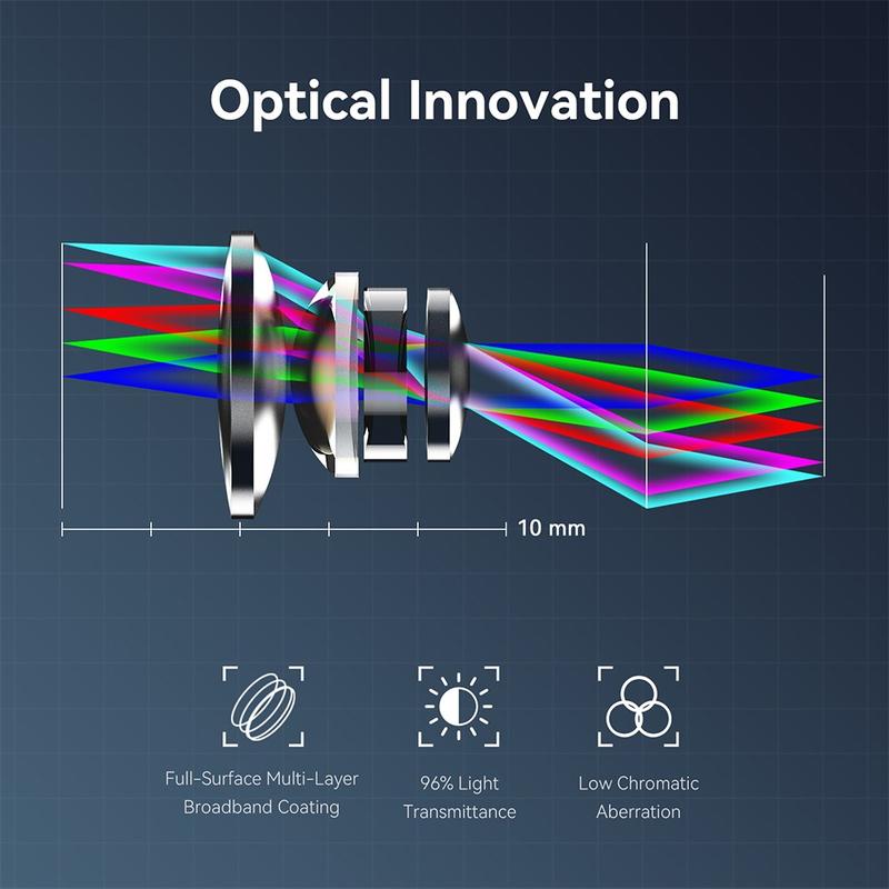 - Inginerie optică avansată - Acoperirea optică multistrat în bandă largă cu o transmisie a luminii de 96% minimizează distorsiunea și aberația cromatică pentru imagini clare, în culori reale.