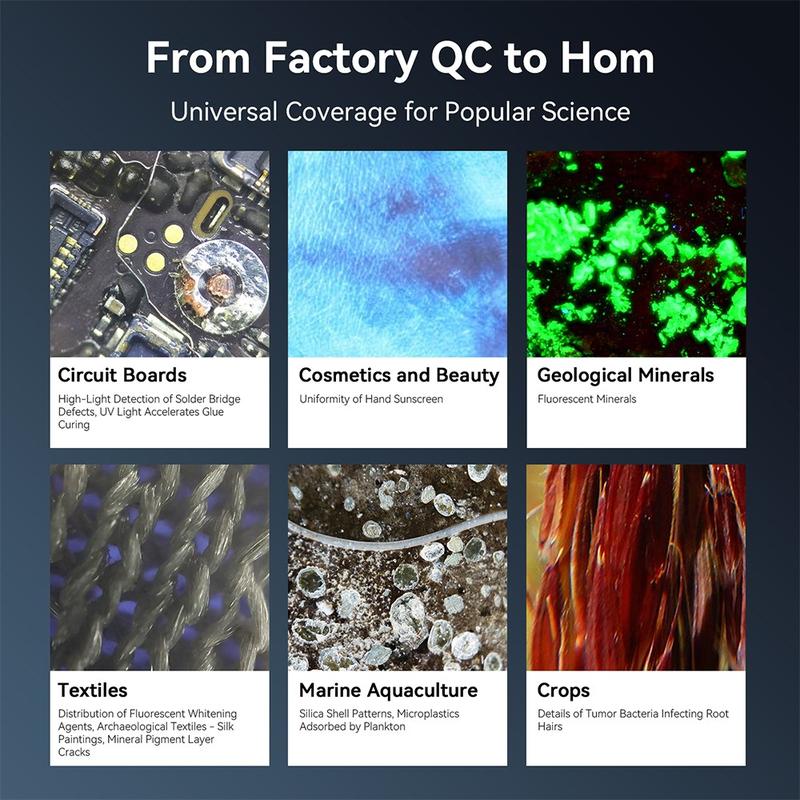 Perfect pentru studenți, cercetători, bijutieri, ingineri și amatori care doresc microscopie portabilă în scopuri științifice, educaționale sau de inspecție.