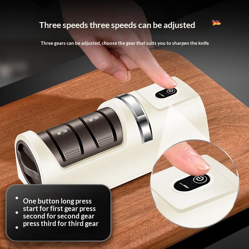 Ascuțitor electric fără fir de 12W, cu 3 setări de viteză și disc de șlefuire cu diamant, pentru cuțite de bucătărie