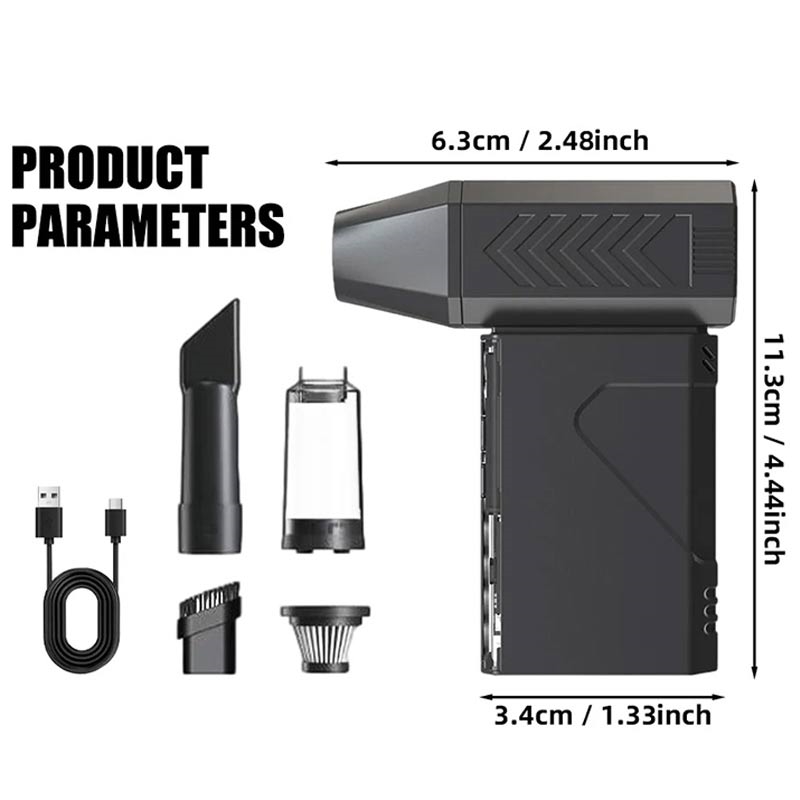 Aspirator portabil și suflantă turbo 2 în 1 puternică - 13000 RPM, 100 de niveluri de viteză, baterie de 8000 mAh