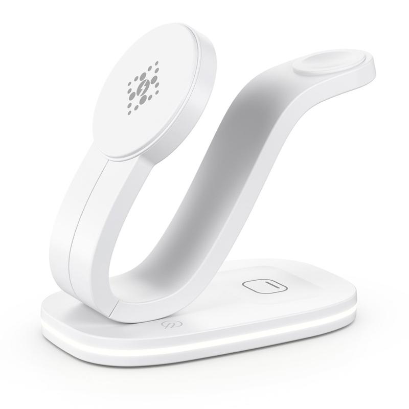Reduceți aglomerația de pe birou cu un singur suport care oferă încărcare wireless rapidă de 15 W, vă alimentează ceasul inteligent la 2 W, vă alimentează căștile la 3 W și se dublează ca o lumină de noapte blândă.