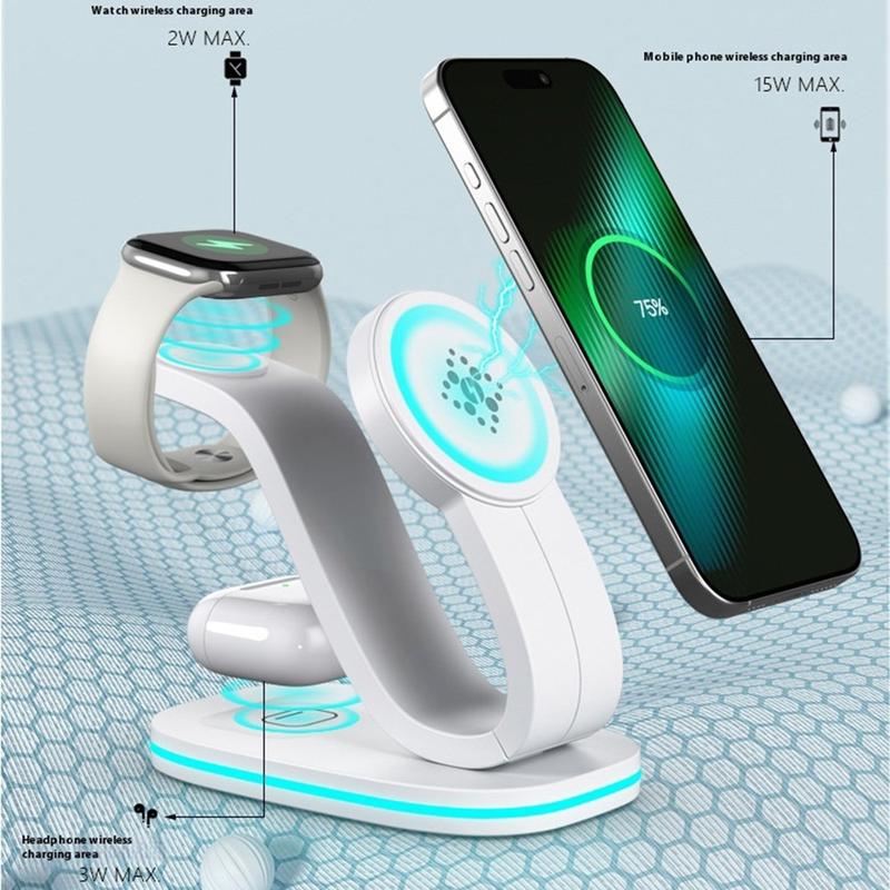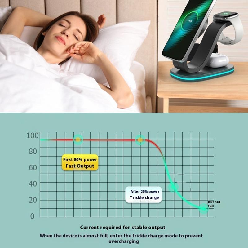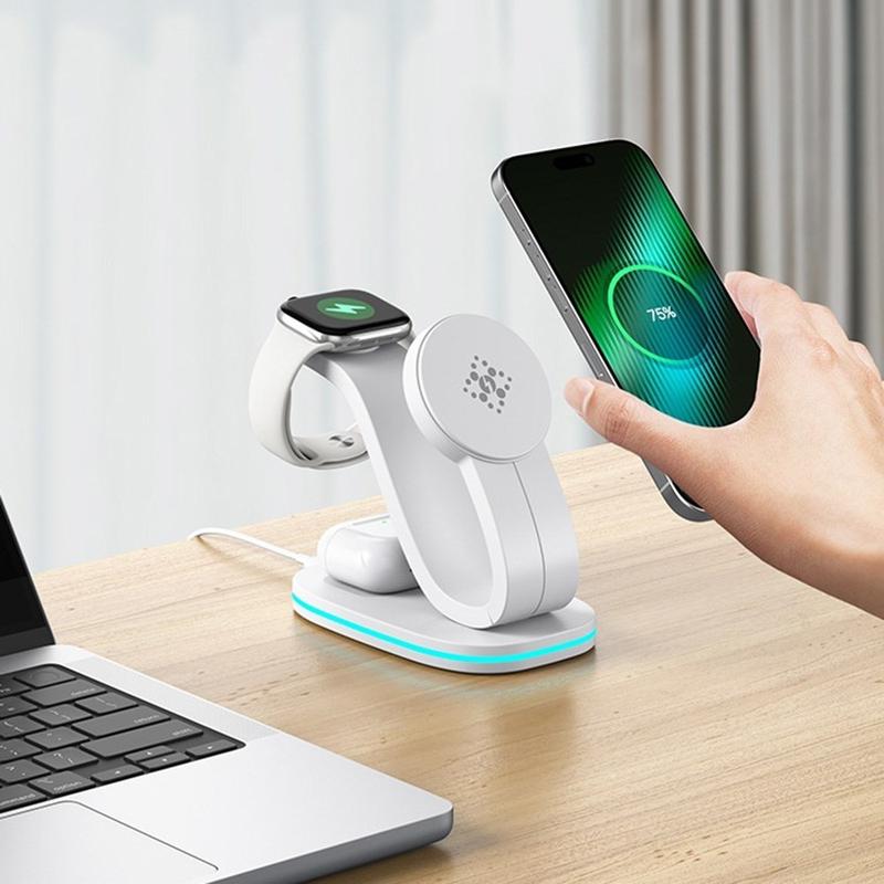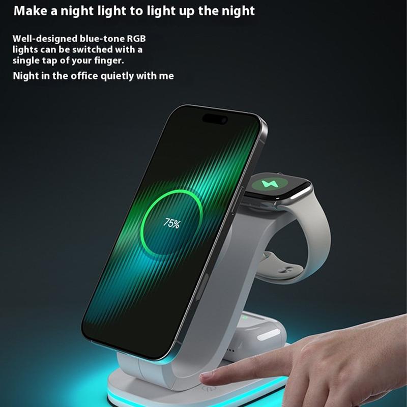 B-28 Încărcător wireless 3 în 1 cu lumină de noapte - alimentează telefonul, ceasul și căștile într-un singur loc