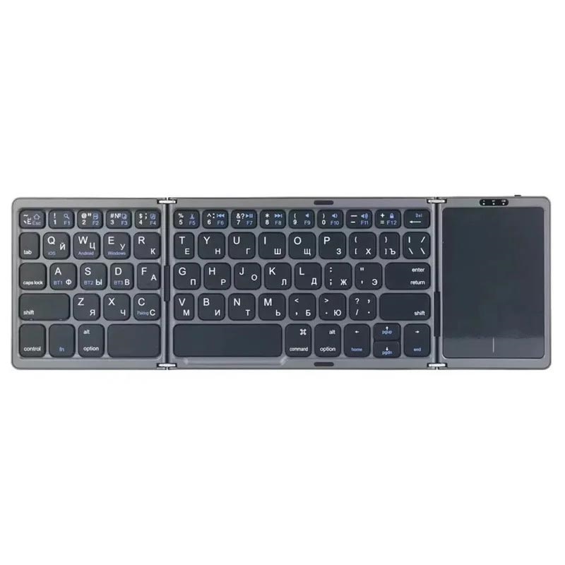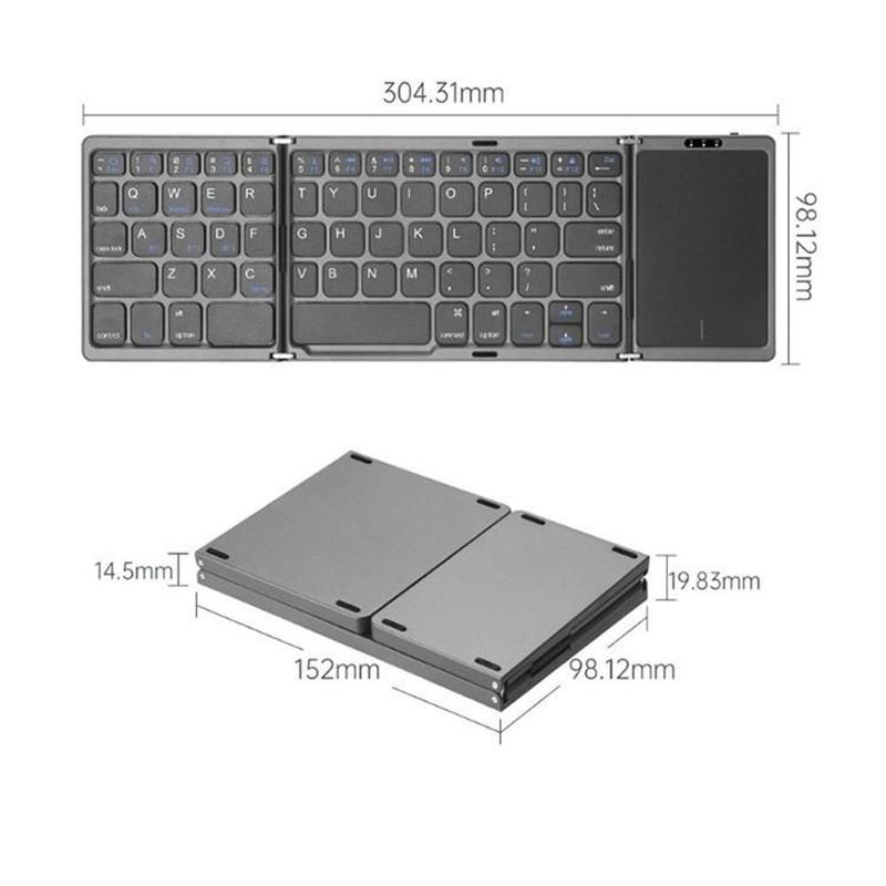 Tastatură wireless pliabilă B089 cu touchpad (81 taste) - QWERTY, compatibilă cu mai multe dispozitive Bluetooth, reîncărcabilă prin USB-C, taste silențioase