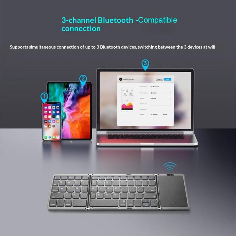 Lucrați confortabil oriunde cu tastatura wireless pliabilă B089 cu touchpad. Designul său subțire, pliabil în trei, se potrivește cu ușurință într-o geantă pentru laptop, iar touchpad-ul încorporat permite o navigare fluentă fără a fi nevoie de un mouse separat. Concepută pentru telefoane, tablete și laptopuri, este ideală pentru călătorii, lucru la distanță și productivitate zilnică.