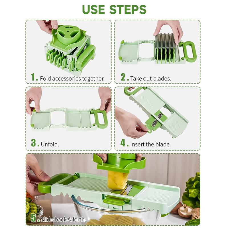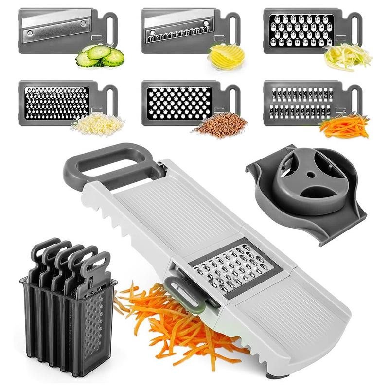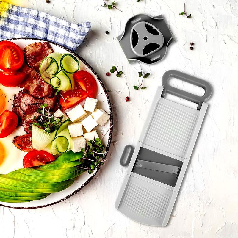 Acest feliator cu mandolină înlocuiește mai multe unelte de bucătărie cu o singură unitate compactă, pliabilă. Lamele sale ascuțite din oțel inoxidabil, construcția durabilă și operarea simplă o fac ideală pentru bucătarii de acasă care doresc o feliere rapidă, consistentă și sigură în fiecare zi. Ușor de curățat, ușor de depozitat și construit pentru utilizare pe termen lung, este un accesoriu de încredere pentru orice bucătărie.