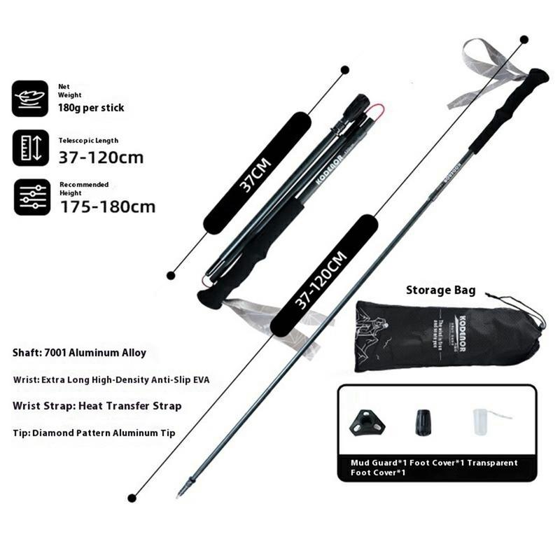 - Lungime reglabilă - Se extinde până la 120cm pentru a se potrivi diferitelor înălțimi și terenuri.