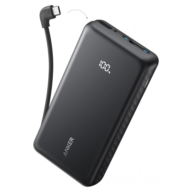 Baterie externă Anker Zolo de 10000mAh - Încărcător portabil de 22.5W cu cablu USB-C integrat, încărcare rapidă QC și PD