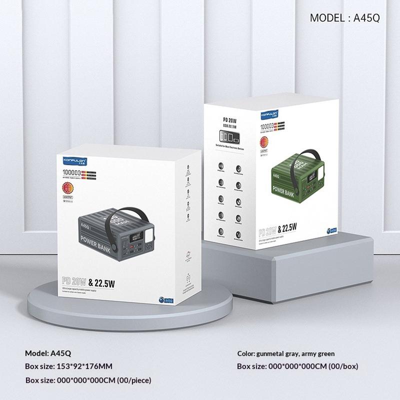 Konfulon A45Q Power Bank 100000 mAh - Stație de încărcare rapidă de 22.5W cu afișaj LED și 7 porturi