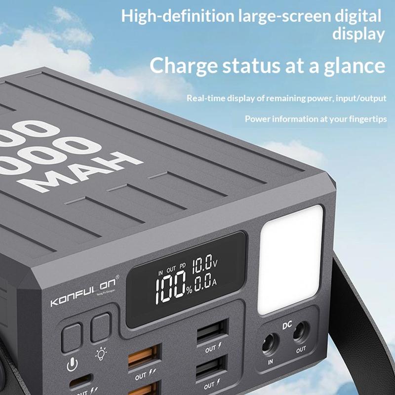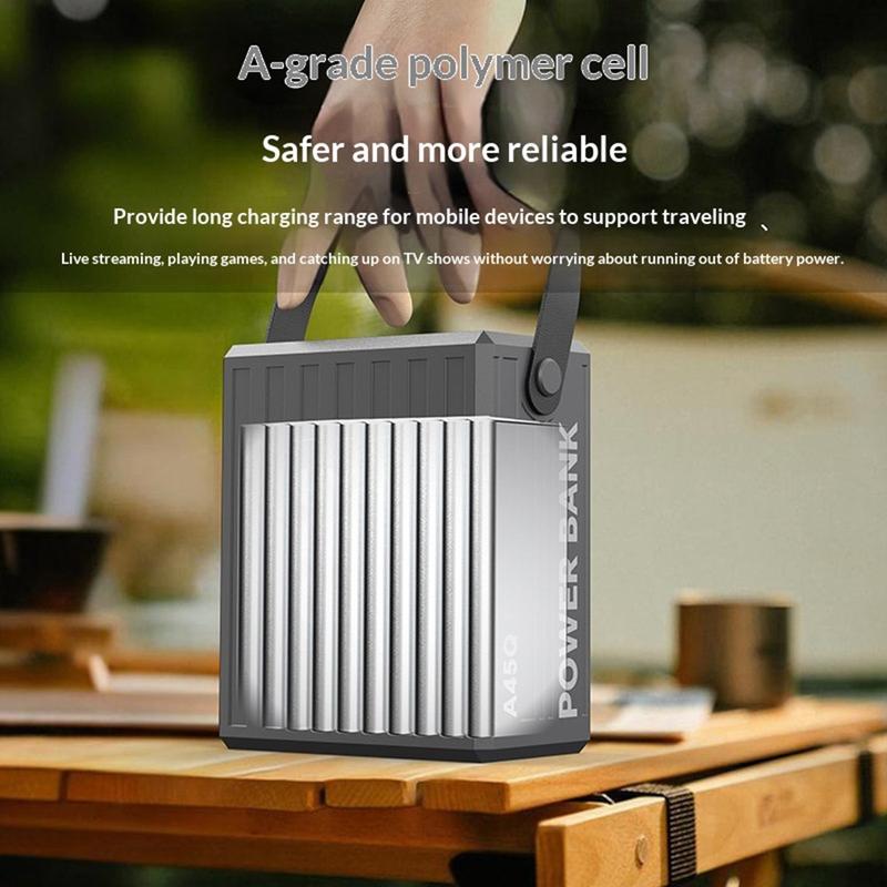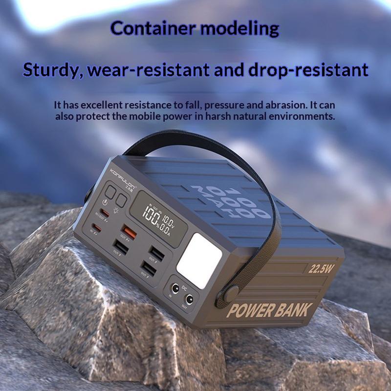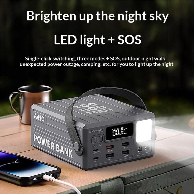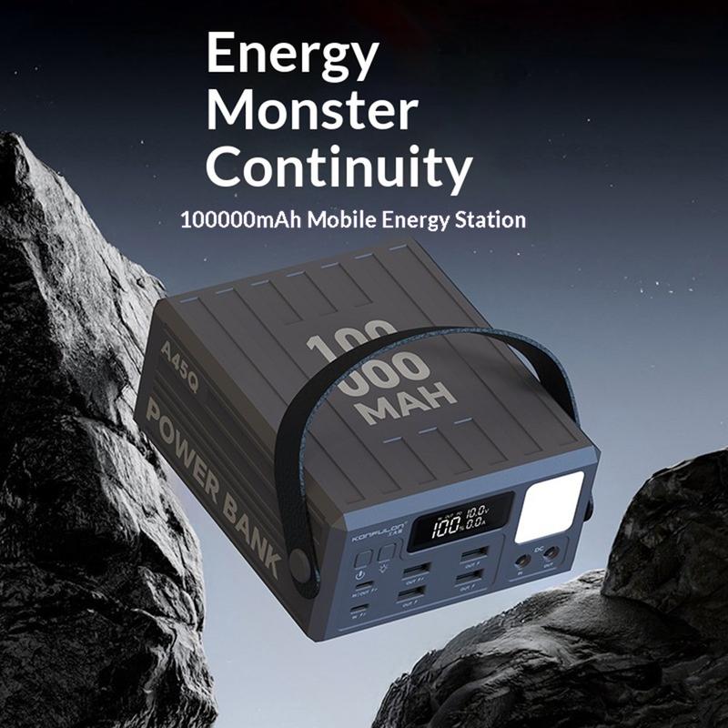 Alimentează mai multe dispozitive pentru mai mult timp cu bateria externă Konfulon A45Q de 100000 mAh. Concepută pentru călătorii, activități în aer liber, camping și ca sursă de alimentare de rezervă acasă, această stație de încărcare de mare capacitate oferă o stocare fiabilă a energiei, cu 7 porturi de ieșire pentru încărcarea comodă a mai multor dispozitive.