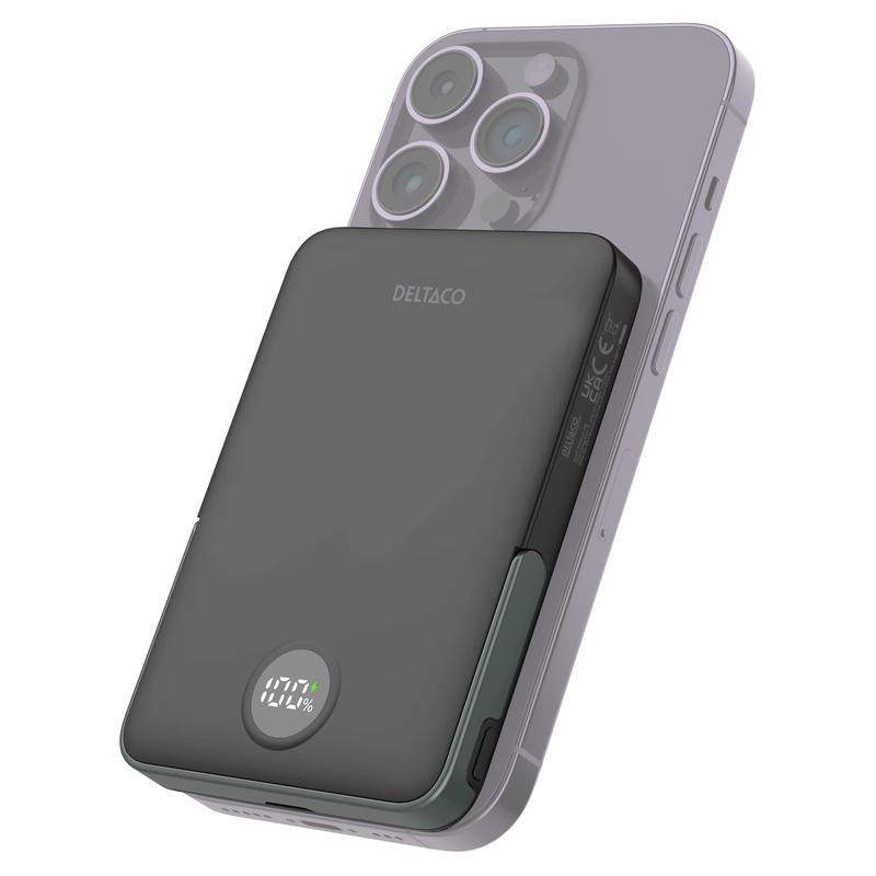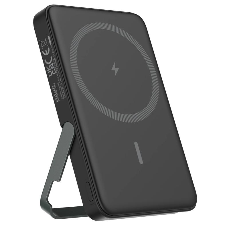 Baterie externă magnetică fără fir Deltaco de 5000mAh cu suport - Încărcător portabil USB-C PD de 20 W