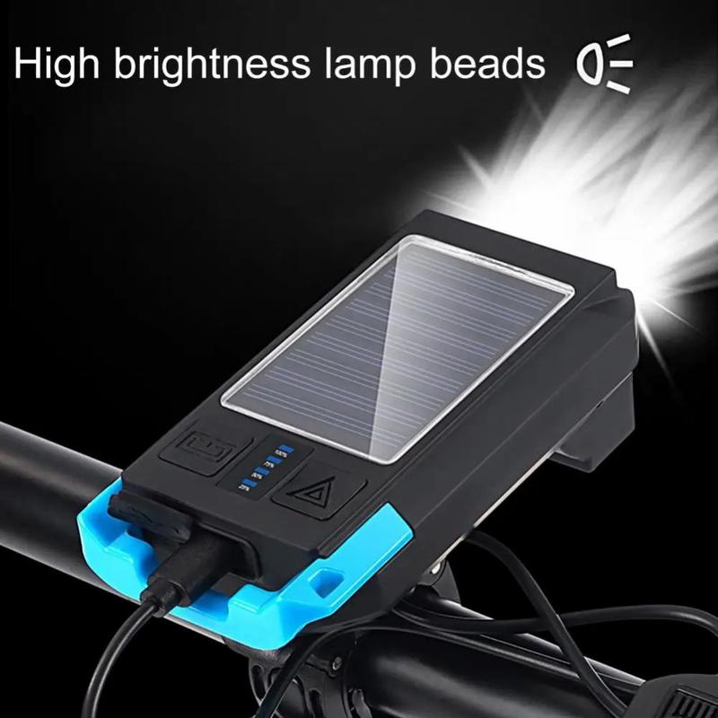BG-1706 USB + Solar Reîncărcabilă Lumini pentru biciclete impermeabile 6 moduri de lumină pentru biciclete cu faruri duble cu alarmă de corn - roșu