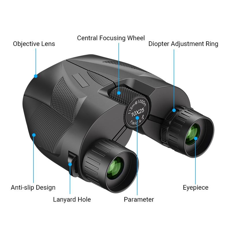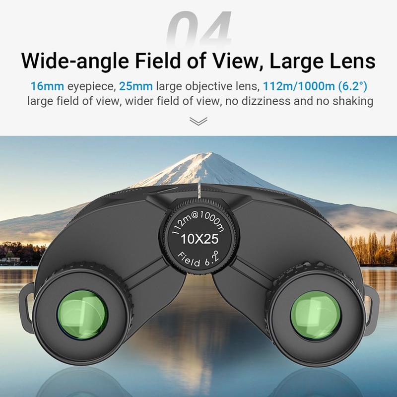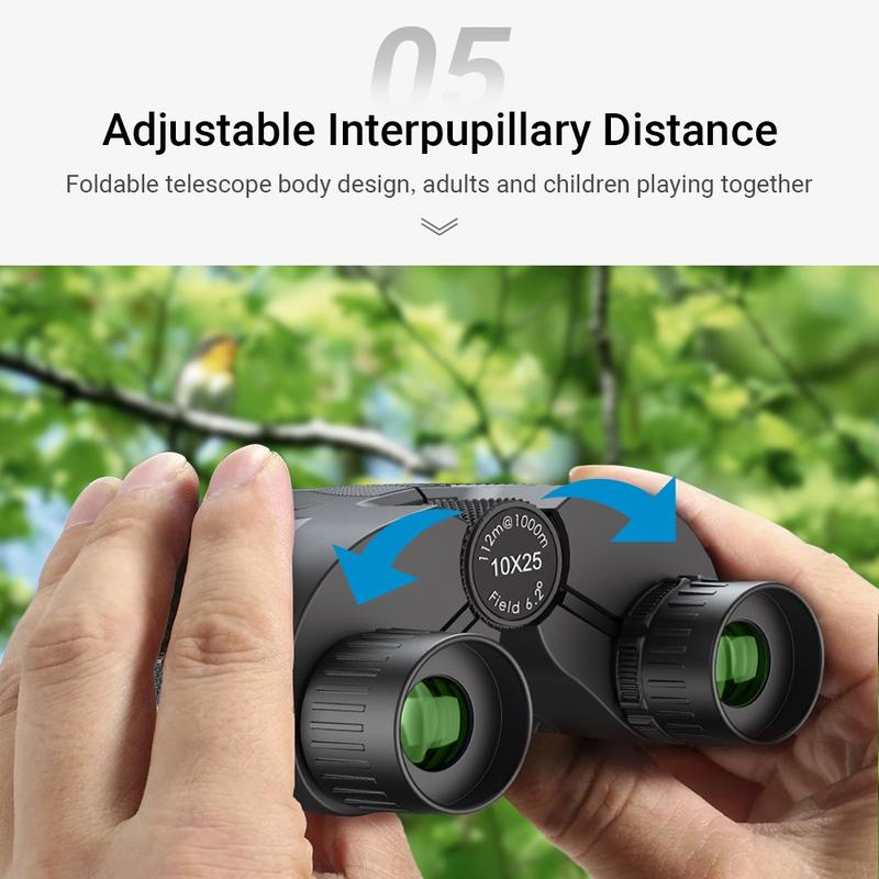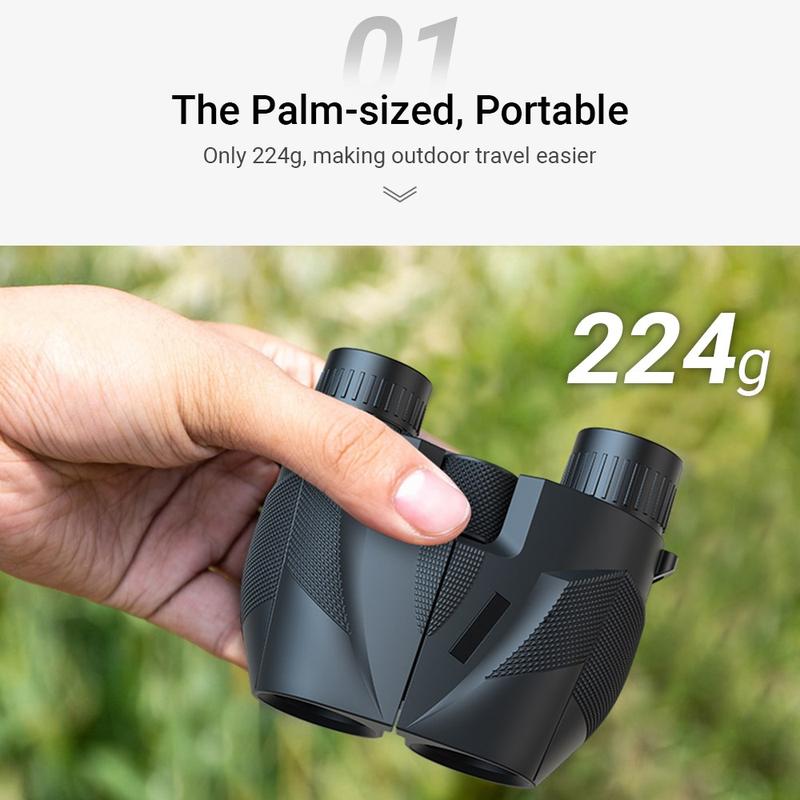 Binoclul APEXEL 10×25 HD combină optica de înaltă calitate cu un design pliabil compact și ușor - perfect pentru călătorii, concerte, drumeții, observarea păsărilor și vizionarea zilnică în aer liber. Cântărind doar 224 g și fiind suficient de mici pentru a încăpea în palmă, acestea oferă portabilitate excepțională fără a compromite claritatea optică.