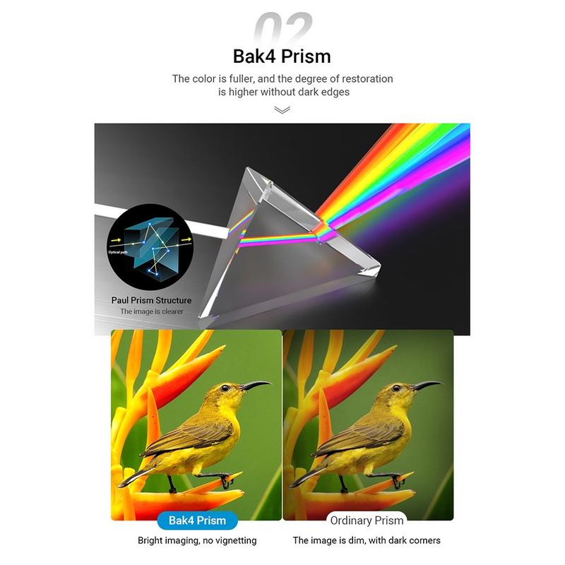 - Sistem de prisme BAK4 pentru o calitate a imaginii mai luminoasă, mai clară, de la margine la margine