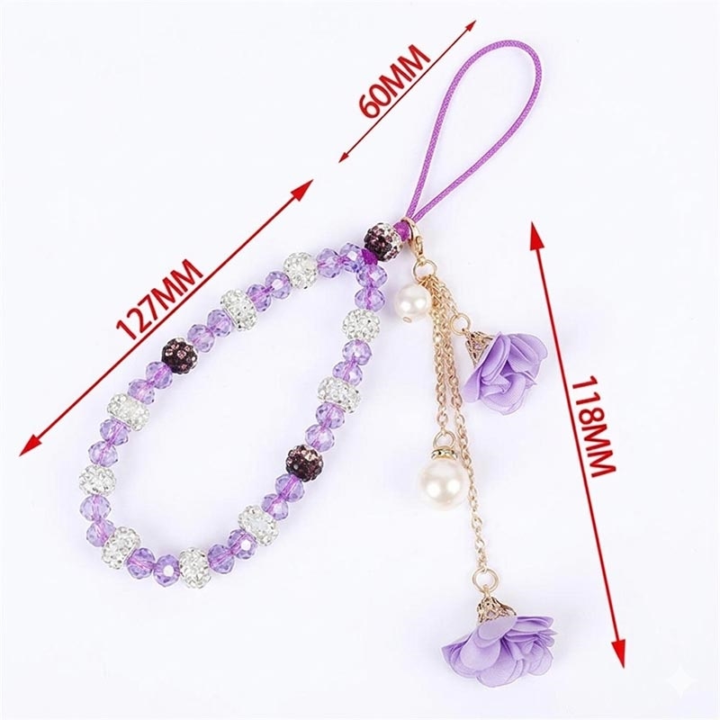 Adaugă un detaliu elegant telefonului tău cu această curea pentru telefon cu mărgele de cristal, de 18,7 cm. Concepută atât ca accesoriu decorativ, cât și ca curea practică pentru încheietură, aceasta combină mărgele în stil cristal, accente metalice cu aspect de strasuri, pandantive în formă de trandafir și un pandantiv cu perle artificiale, pentru un look rafinat de zi cu zi.