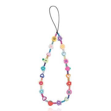 Lanț pentru telefon cu mărgele colorate de 22cm, în nuanțe de perlat - accesoriu pentru telefon cu breloc din acrilic