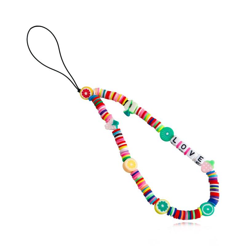 Lanț pentru telefon cu mărgele colorate de 22cm, în nuanțe de perlat - accesoriu pentru telefon cu breloc din acrilic