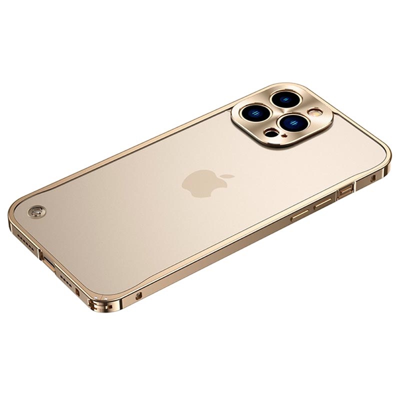Bumper Protecție Metalic cu Spate din Plastic - iPhone 13 Pro Max - Auriu