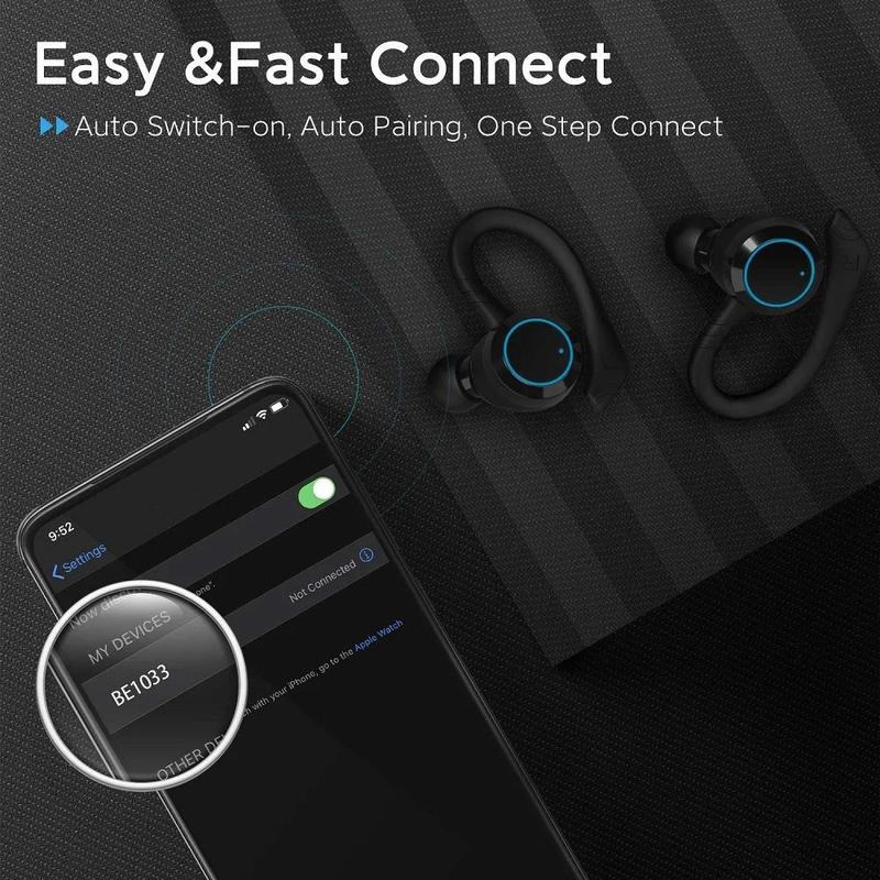 Căști sportive Bluetooth BE1033 - Căști fără fir rezistente la apă (IPX7) cu carcasă de încărcare și comandă tactilă