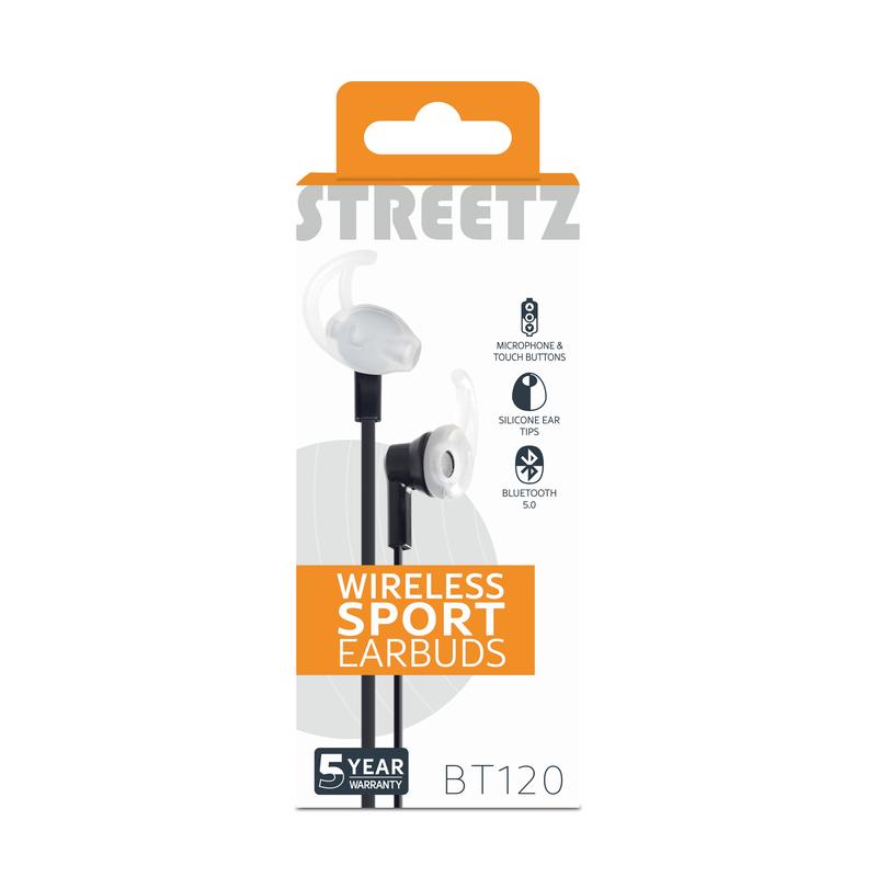 Căști Bluetooth Streetz Stay-in-Ear cu microfon - Căști sportive fără fir cu butoane media/apel, Bluetooth 5, cablu de 1,2 m