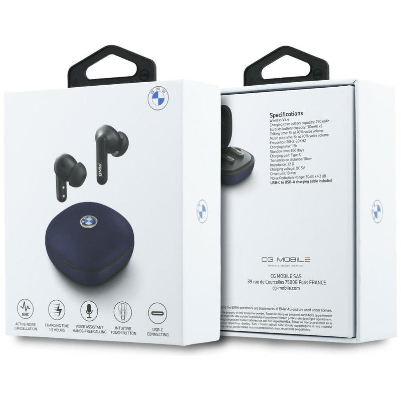Căști true wireless BMW Leather Metal Logo ENC cu control tactil - Bluetooth 5.4, asistent vocal, carcasă de încărcare USB-C