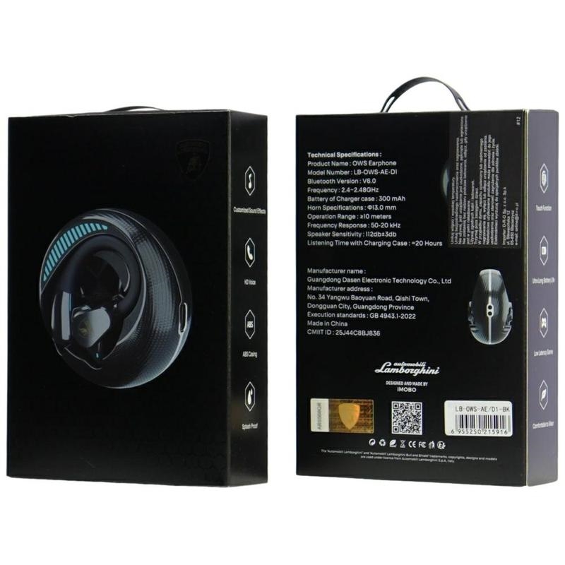 Căști wireless Lamborghini D1 Open Ear - Bluetooth 6.0, drivere de 13 mm, până la 20 de ore cu husă, cu cârlig pentru ureche