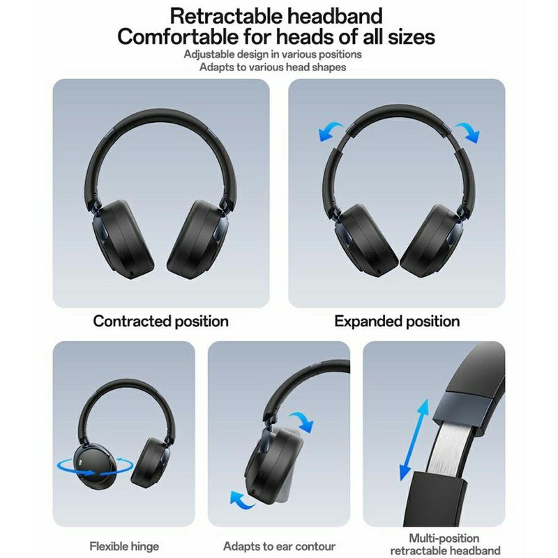 Căști wireless Yesido EP11 cu ANC+ENC - BT 5.4, drivere din titan de 40 mm, autonomie de 30 ore, mufă de 3,5 mm, tip C
