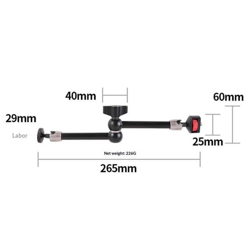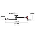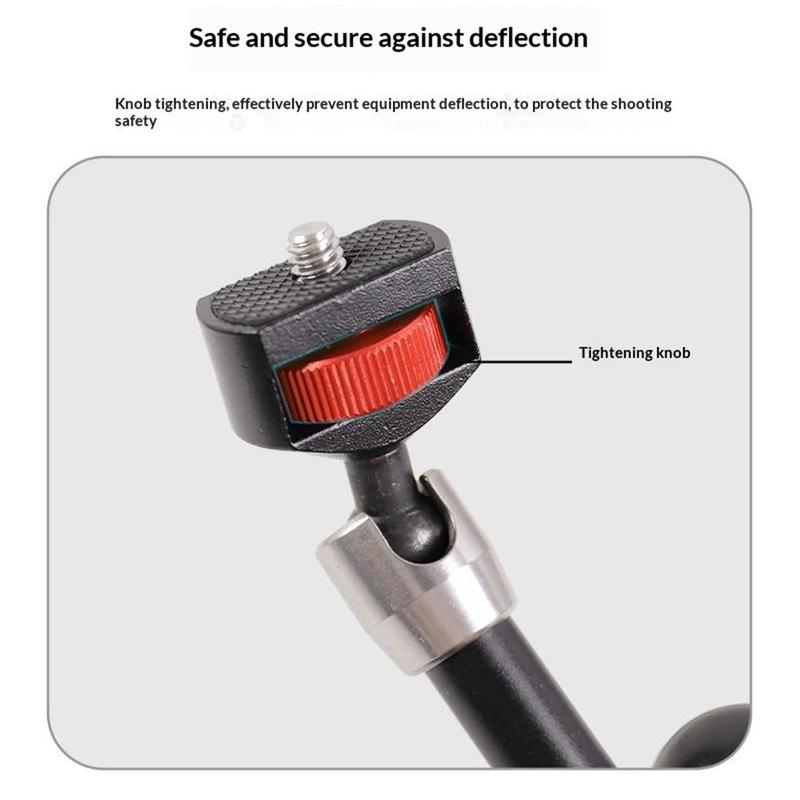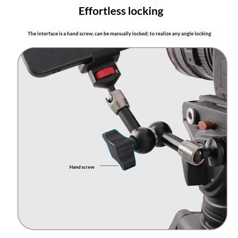 Designul cu cap dublu sferic permite reglarea la 360° pentru o poziționare mai precisă, în timp ce filetul standard de 1/4" de la ambele capete îl face compatibil cu o gamă largă de echipamente. Fabricat din aliaj de aluminiu, brațul oferă o construcție solidă și durabilă, rămânând în același timp suficient de ușor pentru a fi transportat cu ușurință și utilizat zilnic.