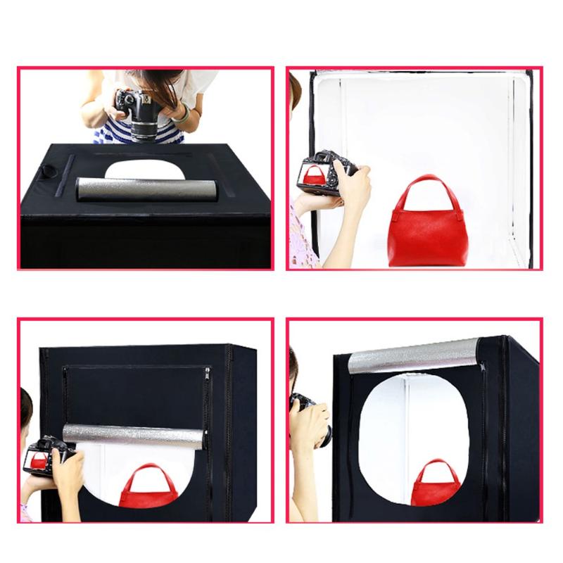 Deschiderile din partea din față și din partea de sus a cortului de fotografiere pot satisface diferitele dvs. unghiuri de fotografiere