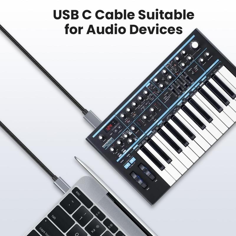 Cablu USB-C la USB-B din nailon pentru imprimantă și MIDI, 1.8m / Sincronizare date la 480 Mbps pentru interfețe audio, tastaturi și imprimante
