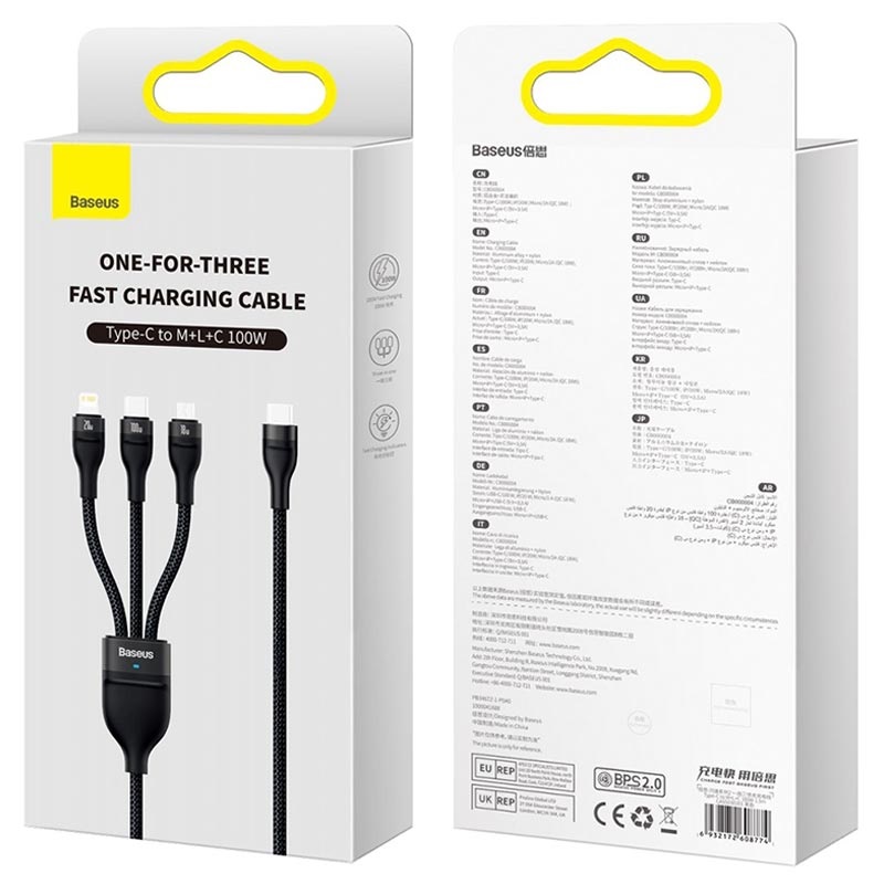- Cablu de încărcare rapidă 3-în-1 Baseus Flash Series II de înaltă calitate